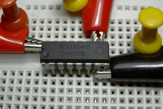 这就是那颗4053的模拟开关了,特意买了个插脚封装的,1块钱1颗。