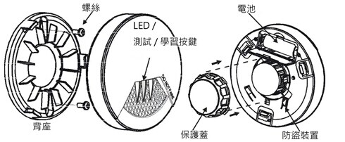 安装说明1. 启动模式: 1) 放入電池 2) 2) 关起背盖3) 报警器将会需要8-12秒去启动和发送一次 ”滴”声.报警器将会被触发当有人移动背盖时.2. 待机模式: 红色LED测试按键的透明塑胶透出來.每334秒闪一次來表示报警器是在正常的模式下. 当报警器被触发时, 报警器会持续发出3次滴声-暂停-3次滴声和红色LED灯将会快速闪烁.3. 静音模式: 当报警器被触发时, 使用者可以按住测试按键來启动暂时性的静音模式10分钟.当报警器侦测到的烟雾含量达到一定值, 且此状况持续达10分钟, 则报警器将自动回到鸣叫功能.4. 低电力警示:: 红色与黄色LED灯会闪一下和每43秒一声短”滴”声.此低电力的警示约可以持续30天,但是晴尽快更换电池以确保安全5. 警报模式 (当报警器被触发时): 电池放入报警器,五分钟內报报警器未妥善装入背座,则防盗裝置会被触发而且黄色LED灯会持续恒亮, 报警器会持续发出3次滴声-暂停-3次滴声直到报警器妥善裝入背座.6. 故障(错误)模式: 每43秒黄色LED灯闪三下和三声短”滴”声. 请送修或和厂商联系.7. 测试步骤: 测试报警器, 请按住测试按键4秒直到同時听到三次短滴-暂停-三次滴声和红色LED灯持续闪烁. 如果每43秒三声短”滴”声与黄色LED闪三次则表示报警器运作不正常, 请再确认一次或通知厂商此问题, 报警器将会回报(Alarm type: 0x01, Level: 0xFF)给Z-WAVE主机. 此外,当关掉报警器时, 报警器也会回报(Alarm type: 0x01, Level: 0x00)给Z-WAVE主机.8. 电力测试模式: 报警器会回报给Z-WAVE主机其电力之寿命.9. 自我保护功能: 假如报警器被移走, 报警器将会回报(Alarm type:0x01, level:0xFF)给Z-WAVE主机. 並且, 黄色LED灯会长亮和报警器内置蜂鸣器会叫. 李立民(jony)
