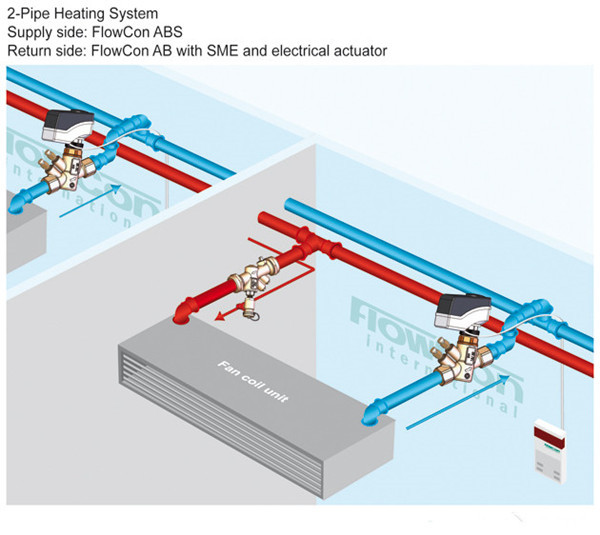 由上图可以看出,国内的风机盘管控制器使用国内标准的220V电压通过内部继电器直接控制风机盘管的风机以及水阀达到控制温度的功能。上图是采用了4管制的空调系统,所以分为热水阀跟冷水阀,一般国内普遍使用2管制的空调系统,所以只有一个水阀,也就是冬天的时候室外主机输出热水到各个房间,夏天的时候室外主机输出冷水到各个房间,然后各个房间通过温控器控制各个房间的风机盘管的风机以及水阀的开关达到控制温度的目的。但是有可能客户家里还装了地暖系统,也就是冬天一般不会采用风机供暖,而是使用水地暖系统达到供暖的目的,所以冬天的就会控制地暖的电热阀,夏天控制风机盘管的风机及水阀。如果只有空调就可以都接到空调水阀上。
