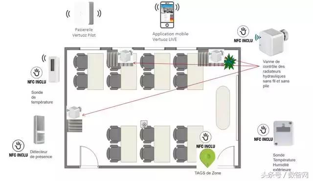 EnOcean开关由按压时的机械能供电、传感器由室内光能供电、温控阀由温差能供电,都无需电池、无需布线。同时内置NFC功能,便于配置设定。
